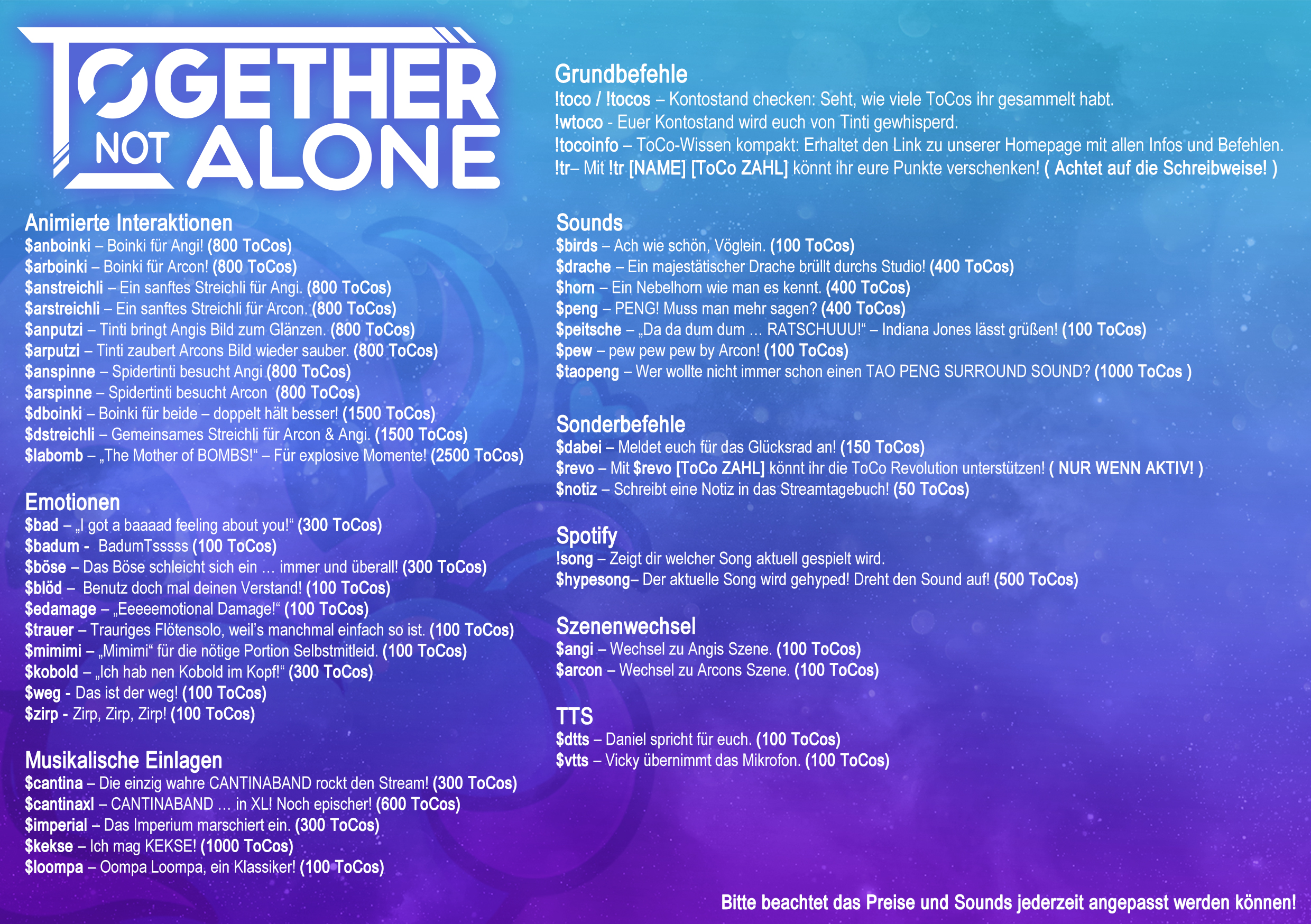 Befehl erfolgreich kopiert! !toco !wtoco !tocoinfo Text erfolgreich kopiert! $anboinki $arboinki $anstreichli $arstreichli $anputzi $arputzi $anspinne $arspinne $dboinki $dstreichli $labomb Text erfolgreich kopiert! $bad $badum $böse $blöd $edamage $trauer $mimimi $kobold $weg $zirp Text erfolgreich kopiert! $cantina $cantinaxl $imperial $kekse $loompa Text erfolgreich kopiert! $birds $drache $horn $peng $peitsche $pew $taopeng Text erfolgreich kopiert! $dabei $revo $notiz Text erfolgreich kopiert! !song $hypesong Text erfolgreich kopiert! $angi $arcon Text erfolgreich kopiert! $dtts $vtts